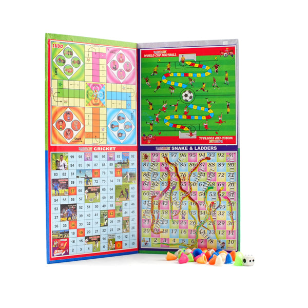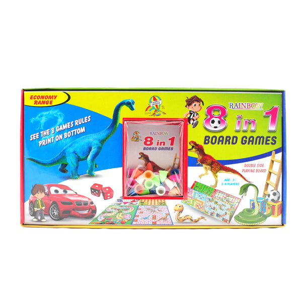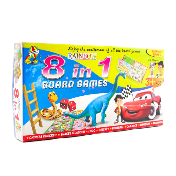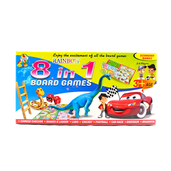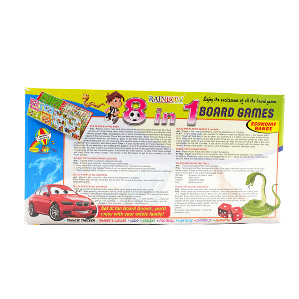 8-in-1 Classic Board Game Set – Ludo, Snake & Ladder, Cricket, Football, Car Race, Dinosaur, Brainvita, and Chinese Checkers